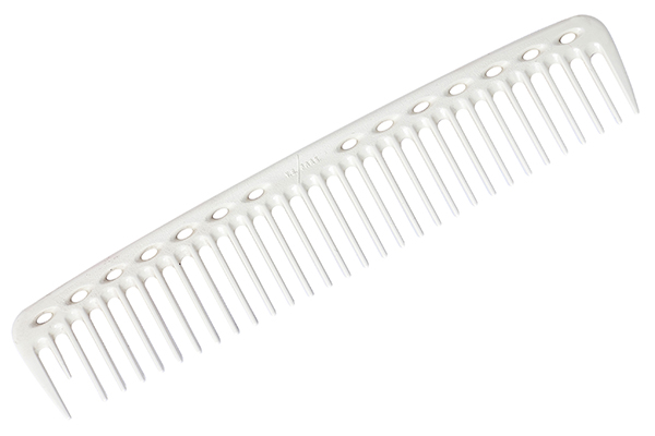 Особая редкозубая длинная расчёска для стрижки, длина 228мм, для базовой и креативной техники. Зубцы идеально круглой формы, без заусенцев и повреждений, проходят сквозь волосы так же мягко, как человеческие пальцы, не повреждая волосы и не травмируя кожу головы. При этом создаётся более естественное натяжение пряди волос и намного более качественная и аккуартная стрижка.