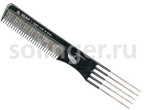 Профессиональная нейлоновая расческа с металлической вилкой для укладки волос, выполнение начёса. Вилка для моделирования прически. Зубчики разной длины. Длина 195мм. Производство — Испания.