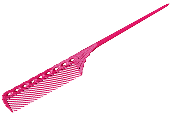 Гибкая расчёска с хвостиком и усиленным обушком, общая длина 215мм, для базовой техники работы. Расчёска предназначена для выделения прядей, окраски и химзавивки. Длина рабочей части расчёски совпадает с длиной стандартной пластиковой бигуди для химзавивки («коклюшки»), что делает её незаменимым инструментом, значительно ускоряющим этот длительный процесс. Частота зубчиков плавно увеличивается от центра к краю расчёски. Это необходимо для более надёжного удержания захваченной пряди.