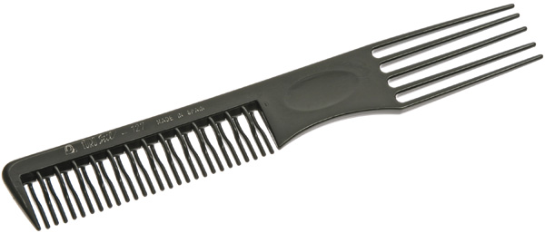 Расчёска с пластиковой «вилкой» и зубчиками в два ряда.