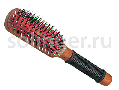 Щетка на деревянной основе с натуральной щетиной и нейлоновыми штифтами.Рифленая ручка из натурального каучука.Натуральная щетина бережно взаимодействует с волосами. Придает естественный блеск.Нейлоновые штифты для лучшего расчесывания, разглаживания и придания блеска волосам.