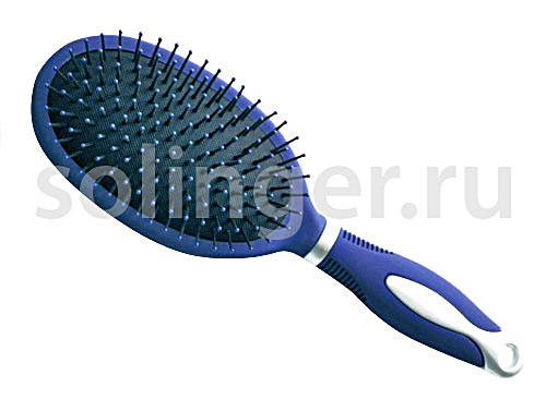 Щетка для волос массажная 11рядная с нейлоновыми штифтами и округлыми наконечниками. Эргономичная ручка, прорезиненная ручка. 26см. Производство — Германия.