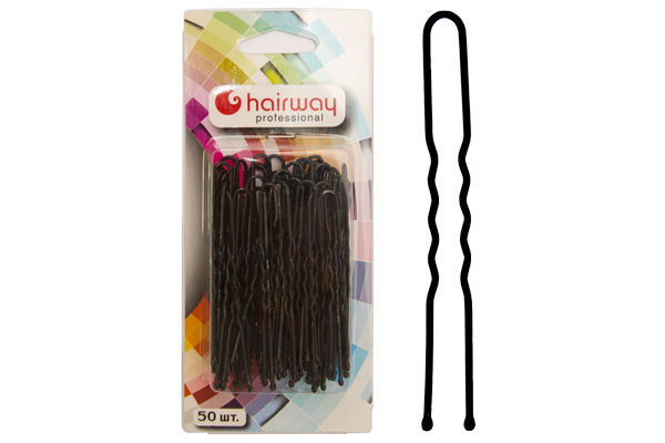 Шпильки Hairway 65 мм черные волнистые 50 шт/уп