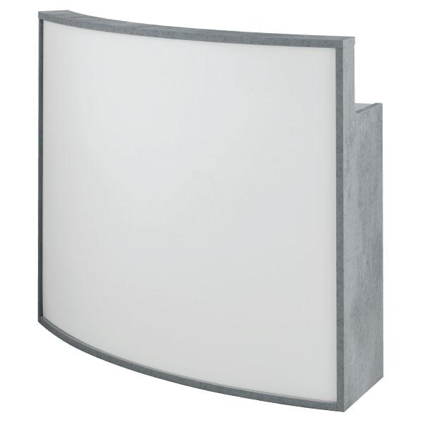 Стойка администратора оснащена выдвижным ящиком с ключом и нишами для хранения. Корпус и наполнение выполнены в ламинате.