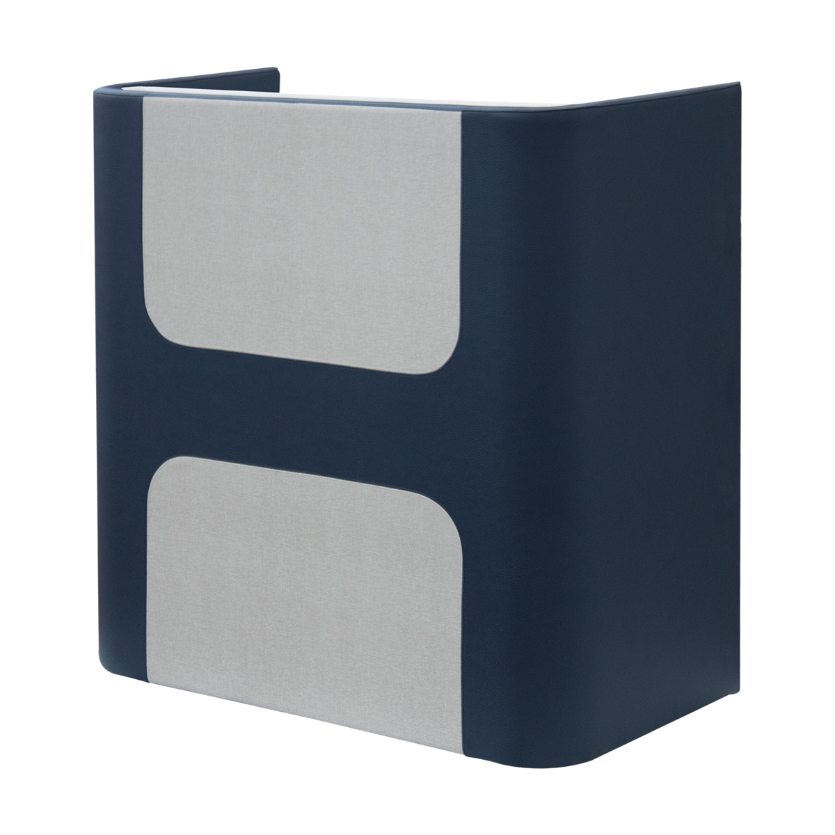 Стойка администратора прямоугольной формы с декоративной отделкой фасада из искусственой кожи. Корпус и наполнение выполнены в ламинате. Обивка — искусственная кожа высшего качества. Длина 100 см.