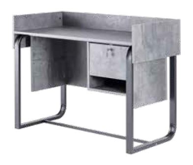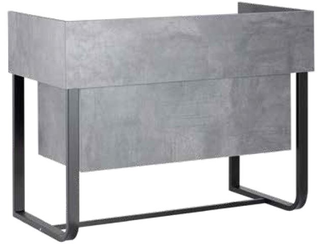 Стойка администратора оснащена выдвижным ящиком и нишей для хранения. Корпус и наполнение выполнены в ламинате серого цвета, каркас стойки выполнен из металла.
