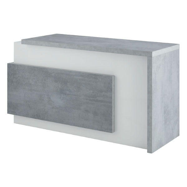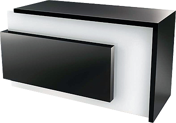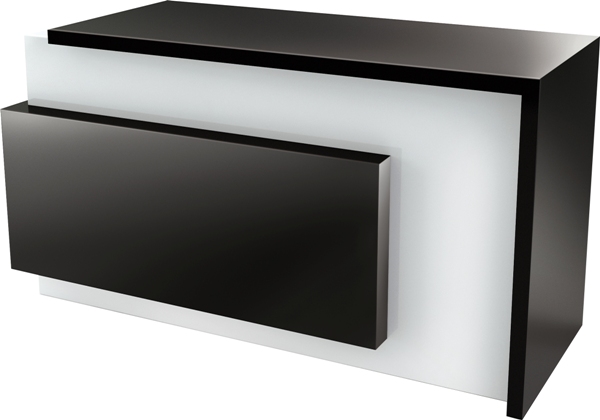 Стойка администратора оснащена двумя выдвижными ящиками и нишами для хранения. Корпус и наполнение выполнены в ламинате.