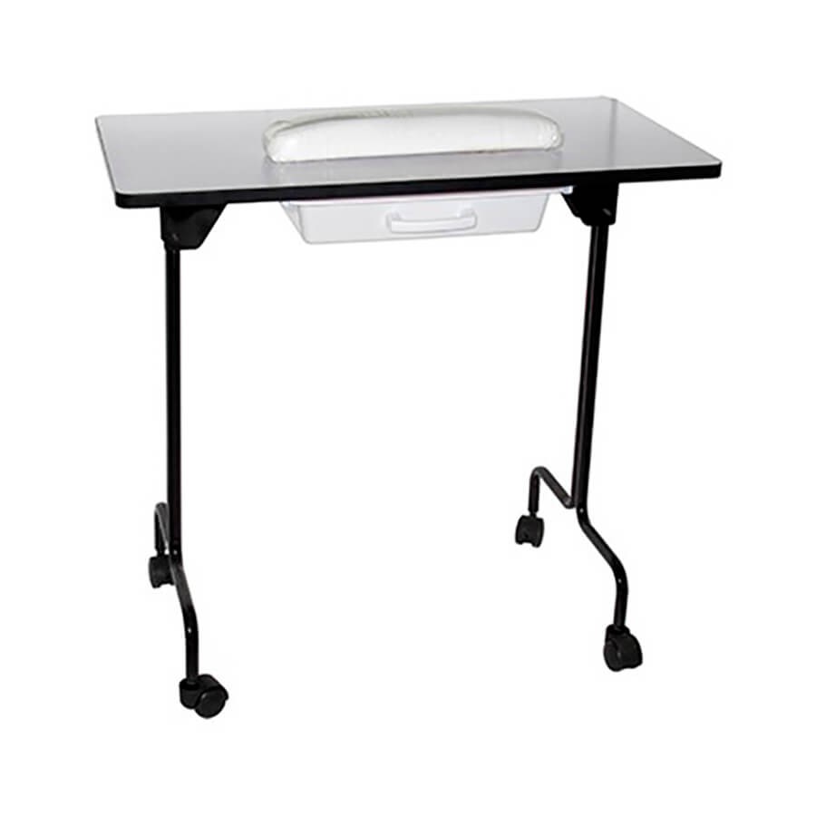 Стол маникюрный складной — это отличная модель, которая пригодится в профессиональном зале небольшого формата или в домашнем кабинете. Она имеет полностью складной корпус, который легко убрать за ненадобностью. Обратите внимание, под столешницей имеется выдвижной ящик, который можно использовать для хранения инструментов и расходных материалов. На столешнице располагается маникюрная подушка, благодаря которой клиент может устроить свои руки с максимальным комфортом. Прочное основание, поставленное на колеса обеспечивает этому складному маникюрному столу исключительную мобильность.