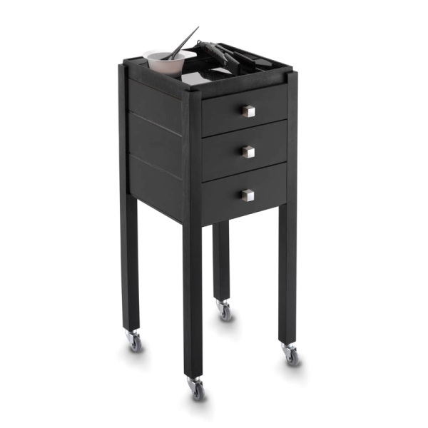 Деревянный столик ECO ELEGANT. Столик выполнен из дерева и оснащен стальным отсеком для защиты поверхности и использования горячих инструментов. Столик оснащен тремя выдвижными ящиками и прорезиненными колесами которые позволяют легко и бесшумно перемещать столик.
