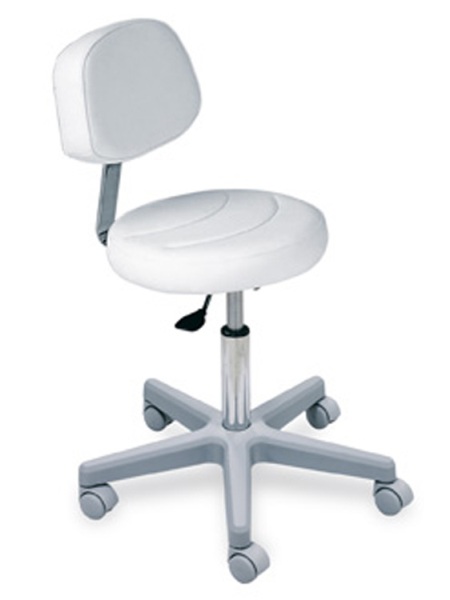 Низкий стул мастера 030/S, оснащен регулируемой спинкой, пластиковым пятилучьем на колесах и газлифтом для регулировки высоты. Посадочное место – круглое.
