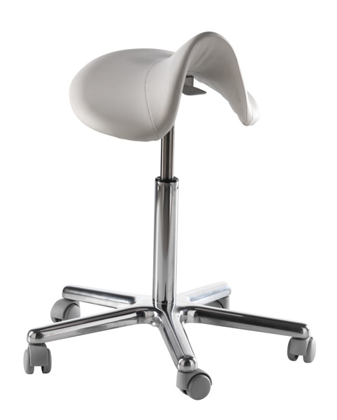 Высокий стул мастера 052, оснащен алюминиевым пятилучьем на колесах и газлифтом для регулировки высоты. Посадочное место – в форме седла.