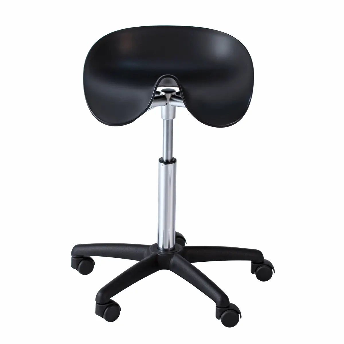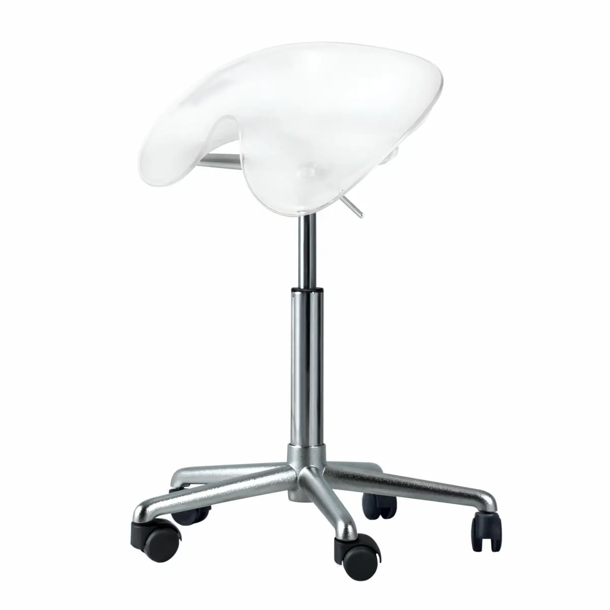 Стул для мастера без спинки. Стул выполнен из высококачественного пластика. Стул оснащен пятилучьем на колесах и газлифтом для регулировки высоты.