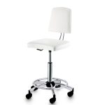 Низкий стул мастера. Стул оснащен алюминиевым основанием в форме пятилучья, колесами и газлифтом для регулировки высоты. Обивка — искусственная кожа высшего качества.