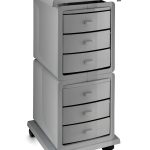 Тележка парикмахерская из прочного пластика закрытого типа на колесах. Имеет боковые отверстия под кисти и сопутствующие аксессуары, а также металлический фенодержатель.