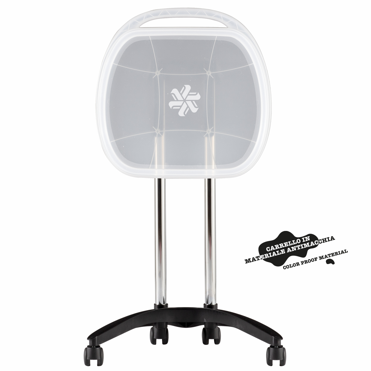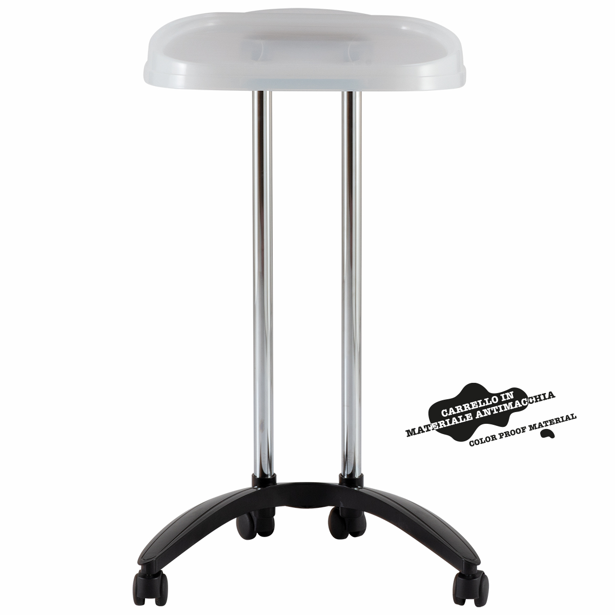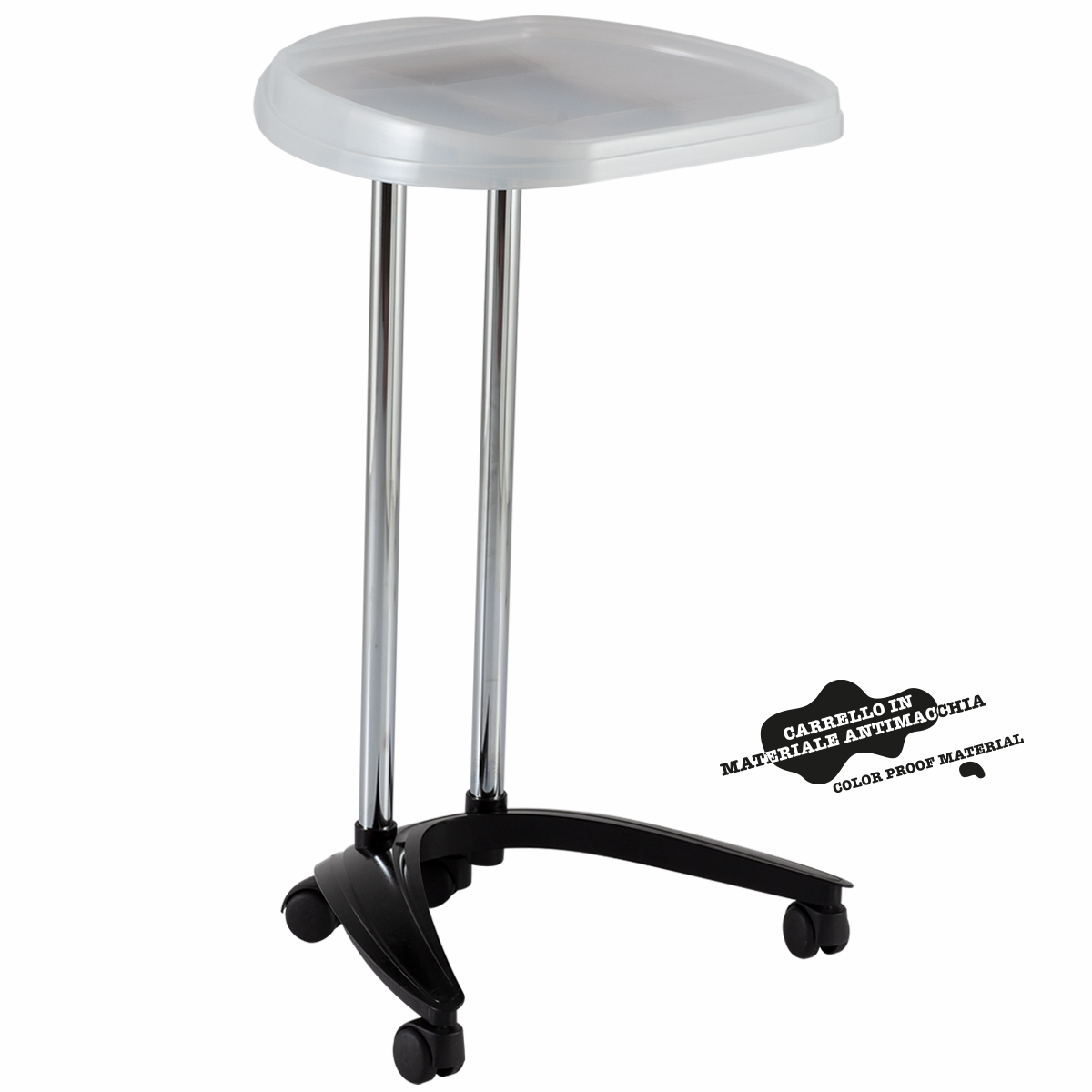 Тележка одноярусная из пластика на колесах. Имеет складную большую рабочую поверхность.