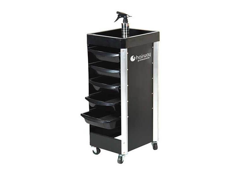 Модель изготовлена из практичного сочетания металла и ударопрочного пластика, а также оснащена маневренной и надежной колесной базой для быстрого и легкого перемещения изделия в связи с производственной необходимостью. Комплектация тележки Hairway предусматривает наличие вместительных выдвижных ящиков, оптимальный размер которых позволит разместить с удобством для мастера весь необходимый в работе парикмахерский инструмент. Дизайн представленного товара прост, лаконичен, что дает возможность с легкостью внедрить его в любое интерьерное оформление.