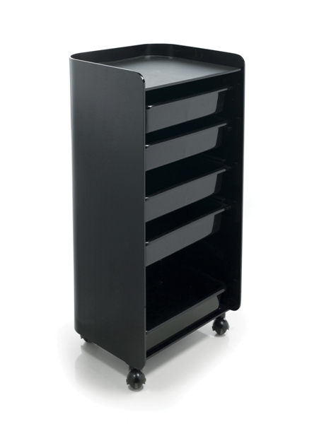 Тележка парикмахерская выполнена из пластика. Тележка оснащена колесиками и выдвижными ящиками.