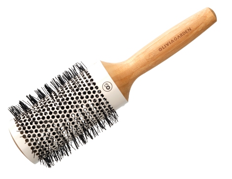 Высококачественный экологичный термобрашинг из натурального бамбука от Olivia Garden. Щетина изготовлена из специального термостойкого нейлона и «заряжена» отрицательными ионами. В совокупности с керамической рабочей поверхностью брашинга это обеспечивает мягкую и бережную укладку.