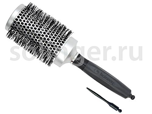 Термобрашинги изготовленные по последним технологиям-облегченный материал,алюминиевая втулка,многогранная ручка( позволяет надежно удерживать термобрашинг во время работы).Овальные отверстия — для более интенсивного прохождения горячего потока воздуха, сокращая тем самым, время укладки,антистатический эффект.