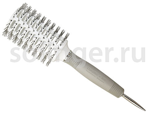 Термобрашинг на пластиковой основе с нейлоновыми штифтами. Ионная технология.Прорезиненная ручкаРазделитель прядей.Керамическая основа равномерно прогревается по всей длине.Ионная технология снижает статичность волос, сохраняет естественную влагу, придает волосам больше объема и блеска, волос становится мягче, шелковистее, послушнее.