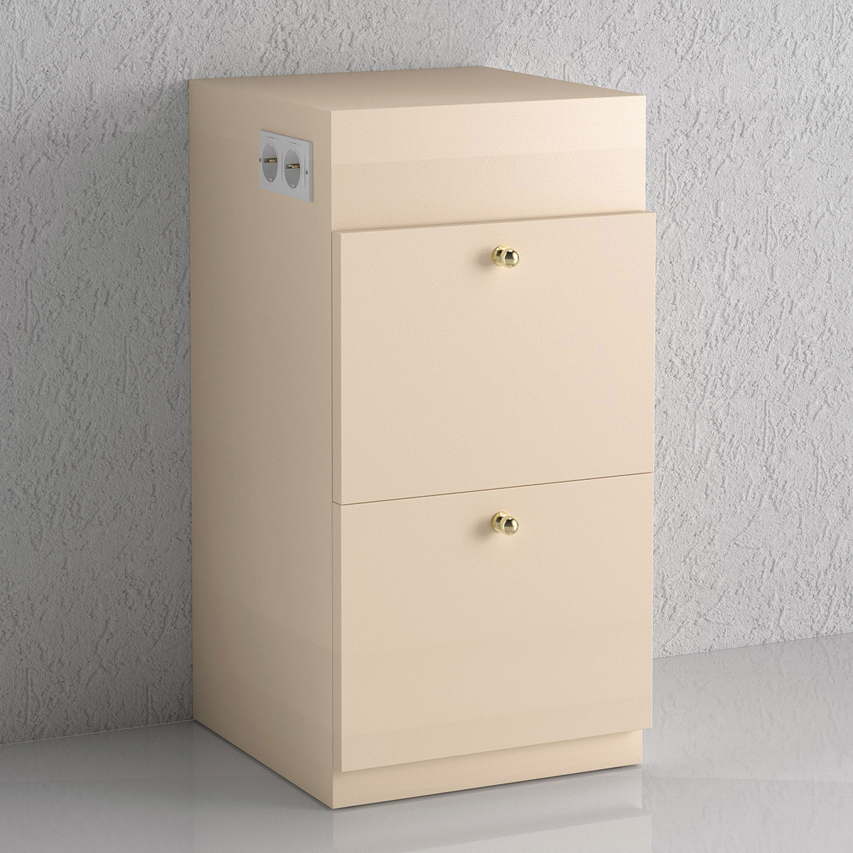 Напольная тумба для рабочих туалетов CONSOLLE CARRE и CONSOLLE RONDE. Тумба оснащена розетками и двумя выдвижными ящиками. Тумба выполнена в ламинате.
