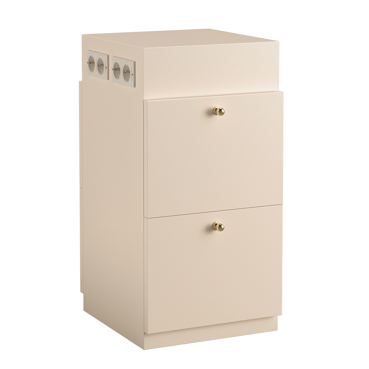 Напольная тумба для рабочих туалетов ILOT CARRE и ILOT RONDE. Тумба оснащена розетками и выдвижными ящиками. Тумба выполнена в ламинате.