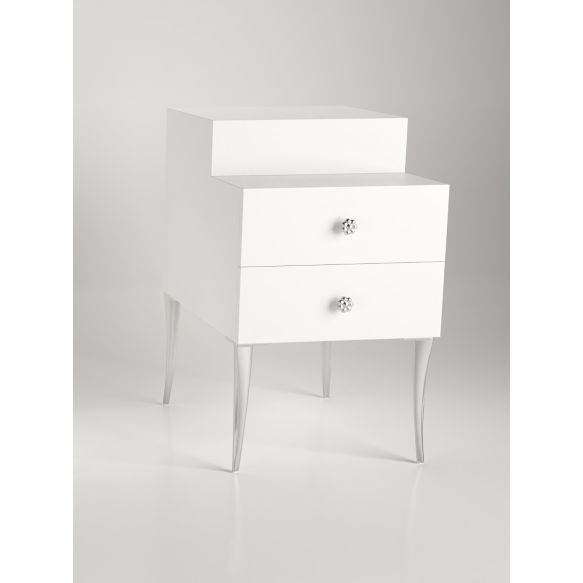 Напольная витрина с двумя выдвижными ящиками. Витрина может быть выполнена из ламината или акрила. Витрина оснащена алюминиевыми ножками.