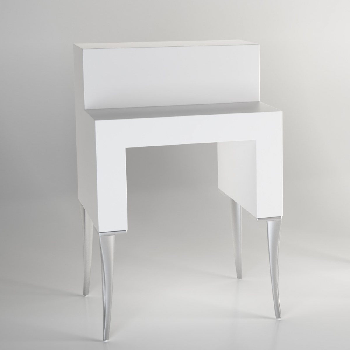Напольная витрина без выдвижных ящиков. Витрина может быть выполнена из ламината или акрила. Витрина оснащена алюминиевыми ножками.