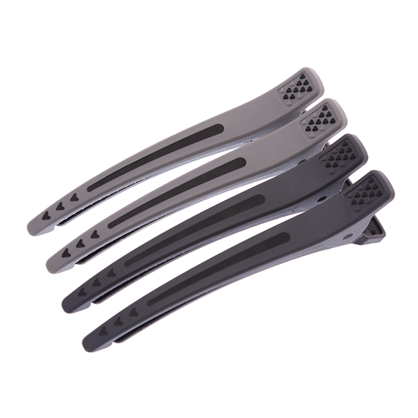Лёгкий пластиковый зажим для волос ANTISLIP с силиконовой вставкой, препятствующей соскальзыванию зажима с волос и образованию залома. Вставка позволяет зафиксировать прядь волос минимального размера. Комплект 4 штуки.