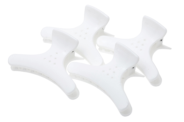 Зажимы «бабочка» пластиковые, 4 штуки в упаковке. Данный тип зажимов отличается от обычных наличием двух рядов зубчиков. Внешние и дополнительные внутренние зубчики обеспечивают очень прочный и надёжный захват пряди волос.