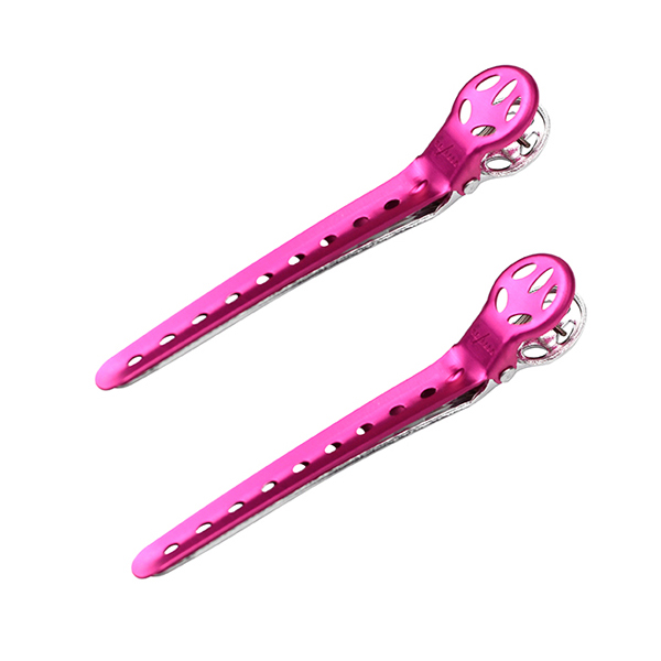 Классические алюминиевые облегчённые зажимы для волос. Длина зажима — 100 мм, что сравнимо со средней длиной пальца человеческой руки и обеспечивает больший комфорт при выделении пряди волос. Форма зажима повторяет форму окружности головы. Мощная пружина надёжно фиксирует прядь волос. Зажим рекомендуется использовать при окрашивании, делении на сектора при стрижке и для других типов работы с волосами.