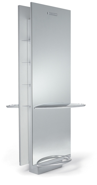 Двусторонний рабочий туалет на два рабочих места. Рабочий туалет оснащен боковыми полками для хранения, алюминиевыми столешницами оригинальной формы с отверстиями для фена и подставками под ноги. Крепление к полу.