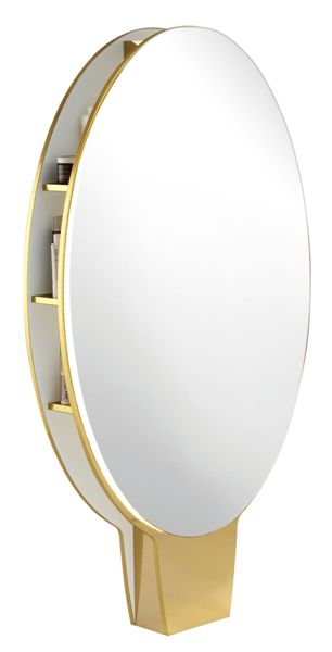 Зеркало парикмахерское двустороннее с открытыми секциями. Зеркало оснащено открытыми нишами. Каркас выполнен в ламинате. Крепление к полу.