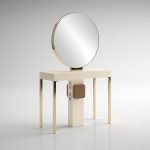 Металлические ножки и окантовка зеркал рабочего туалета выполнены в золотом, хромированном или черном цвете. Рабочий стол выполнен в ламинате.