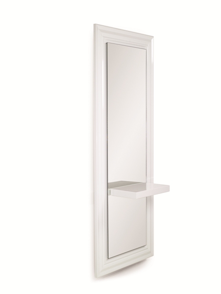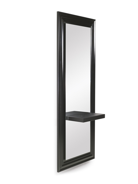 Зеркало парикмахерское с декоративной рамкой. Зеркало оснащено ламинированной столешницей. Рама зеркала и столешница выполнены в ламинате белого или черного цвета. Крепление к стене.