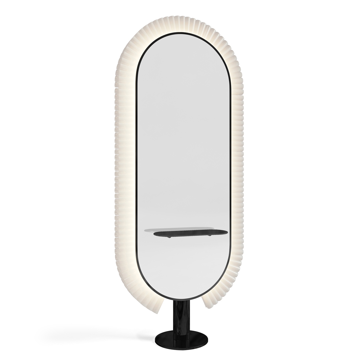 Двусторонний рабочий туалет с декоративной рамкой на два рабочих места. Рабочий туалет оснащен светодиодной подсветкой LED (3000 K) и столешницами в черном матовом цвете. Крепление к полу.