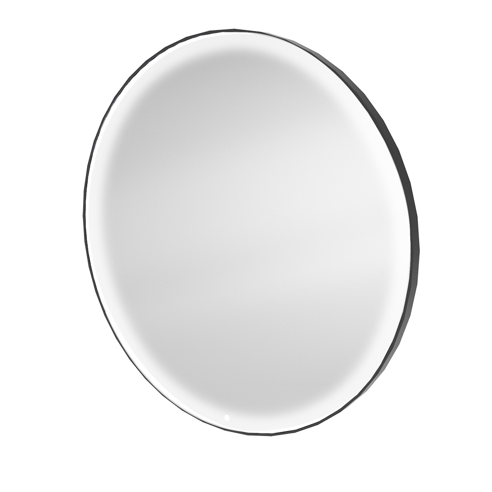 Зеркало парикмахерское округлой формы. Зеркало оснащено светодиодной подсветкой с сенсорным выключателем и диммером. Рама зеркала черного цвета. Крепление к стене.