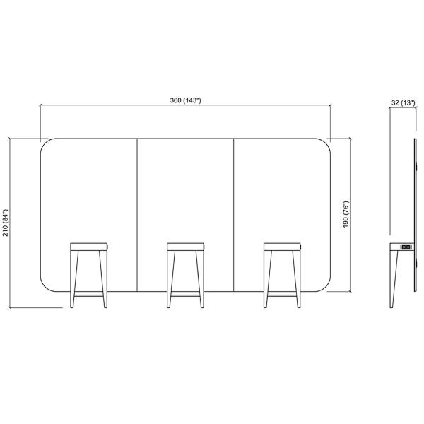 Рабочий туалет на три рабочих места. Рабочий туалет оснащен консолями, выполненными в дереве, с подставками под ноги. Крепление к стене.
