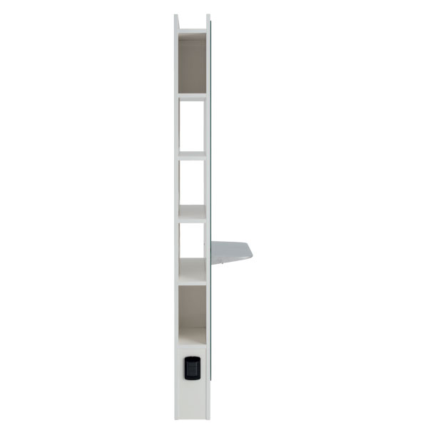 Зеркало парикмахерское одностороннее с открытыми секциями. Зеркало оснащено открытыми нишами и хромированной столешницей. Каркас выполнен в ламинате. Крепление к стене.