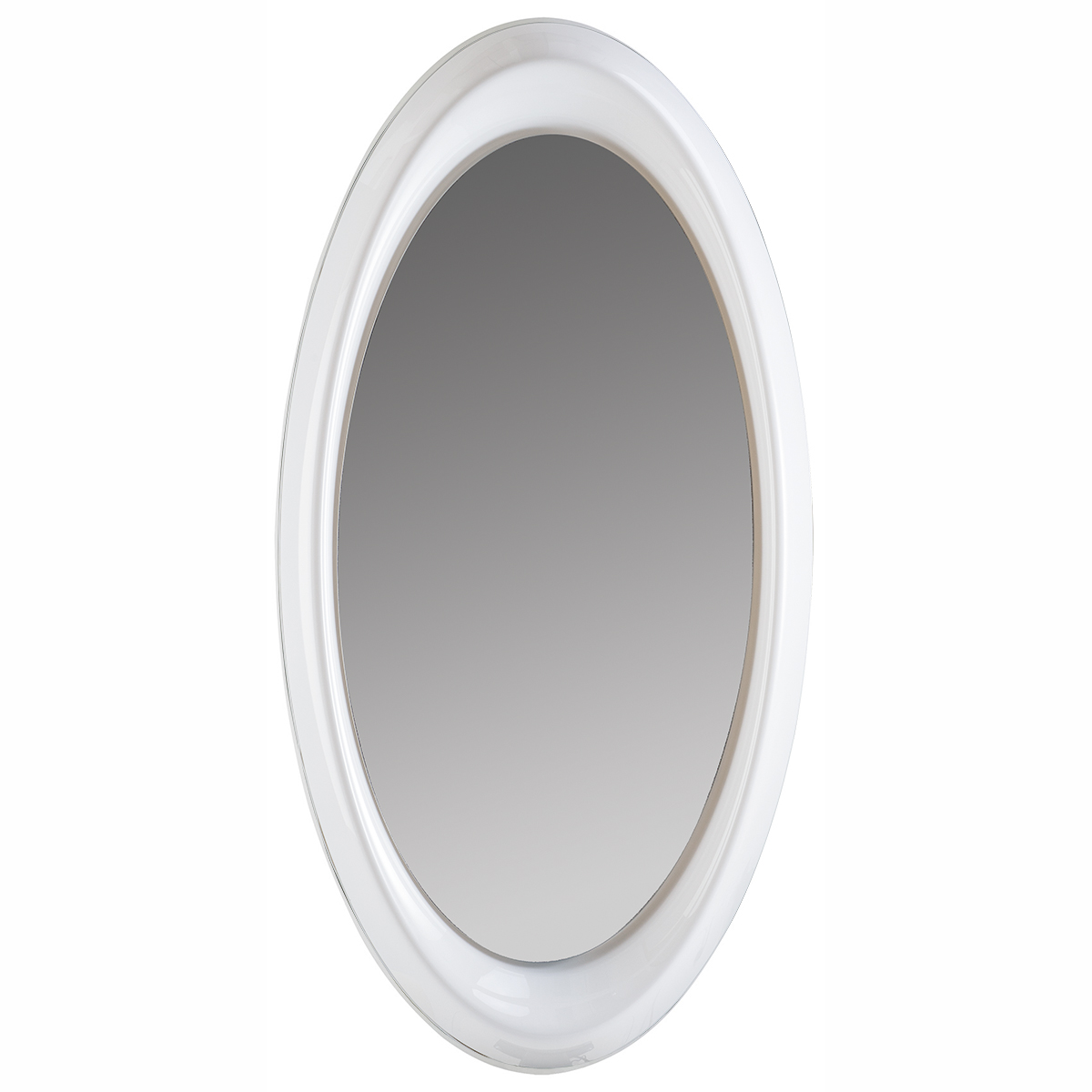 Зеркало парикмахерское одностороннее округлой формы. Каркас выполнен из глянцевого пластика белого цвета. Крепление к стене.