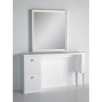Рабочий туалет на одно рабочее место. Рабочий туалет оснащен зеркалом прямоугольной формы и столом на алюминиевых ножках. Рабочий стол оснащен розеткой и двумя выдвижными ящиками. Крепление зеркала к стене.