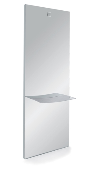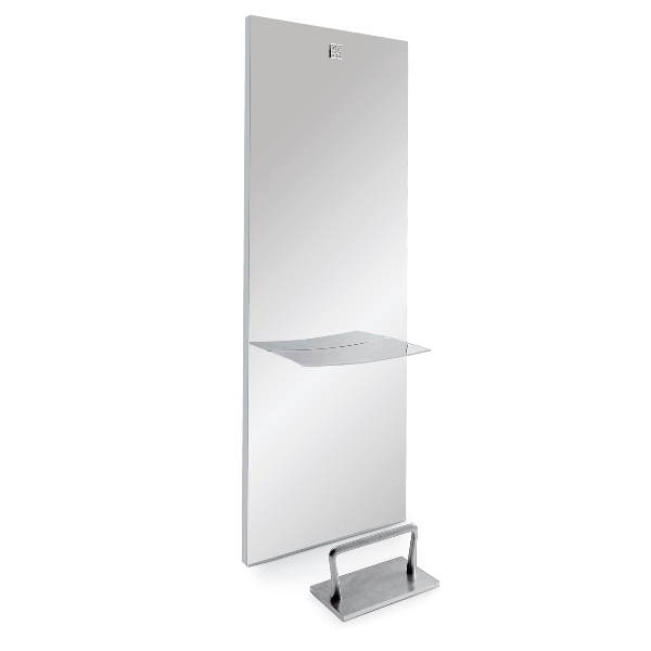 Зеркало парикмахерское прямоугольной формы. Зеркало оснащено алюминиевой столешницей оригинальной формы. Крепление к стене.