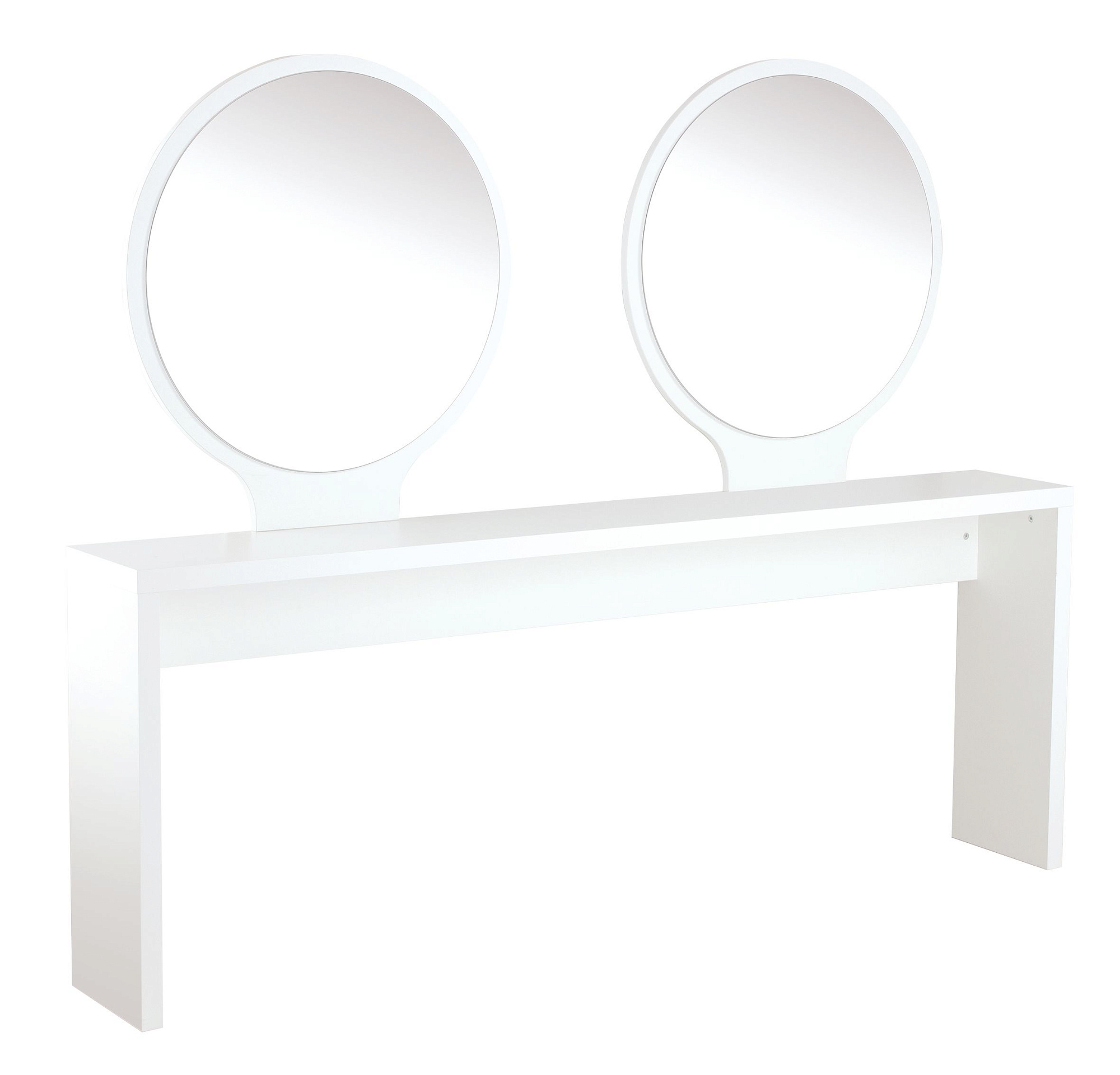 Рабочий туалет на два рабочих места. Рабочий туалет выполнен в ламинате. Рабочий туалет оснащен зеркалами округлой формы. Крепление к стене.