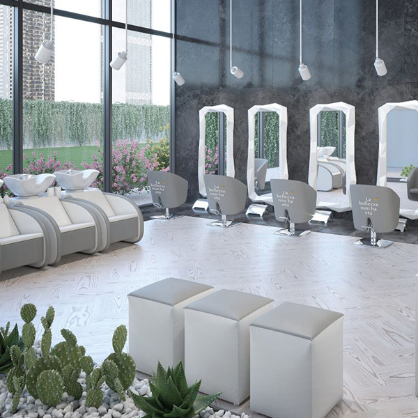 Зеркало парикмахерское одностороннее оригинальной формы. Каркас выполнен из стекловолокна с блестящим эффектом. Крепление к стене.